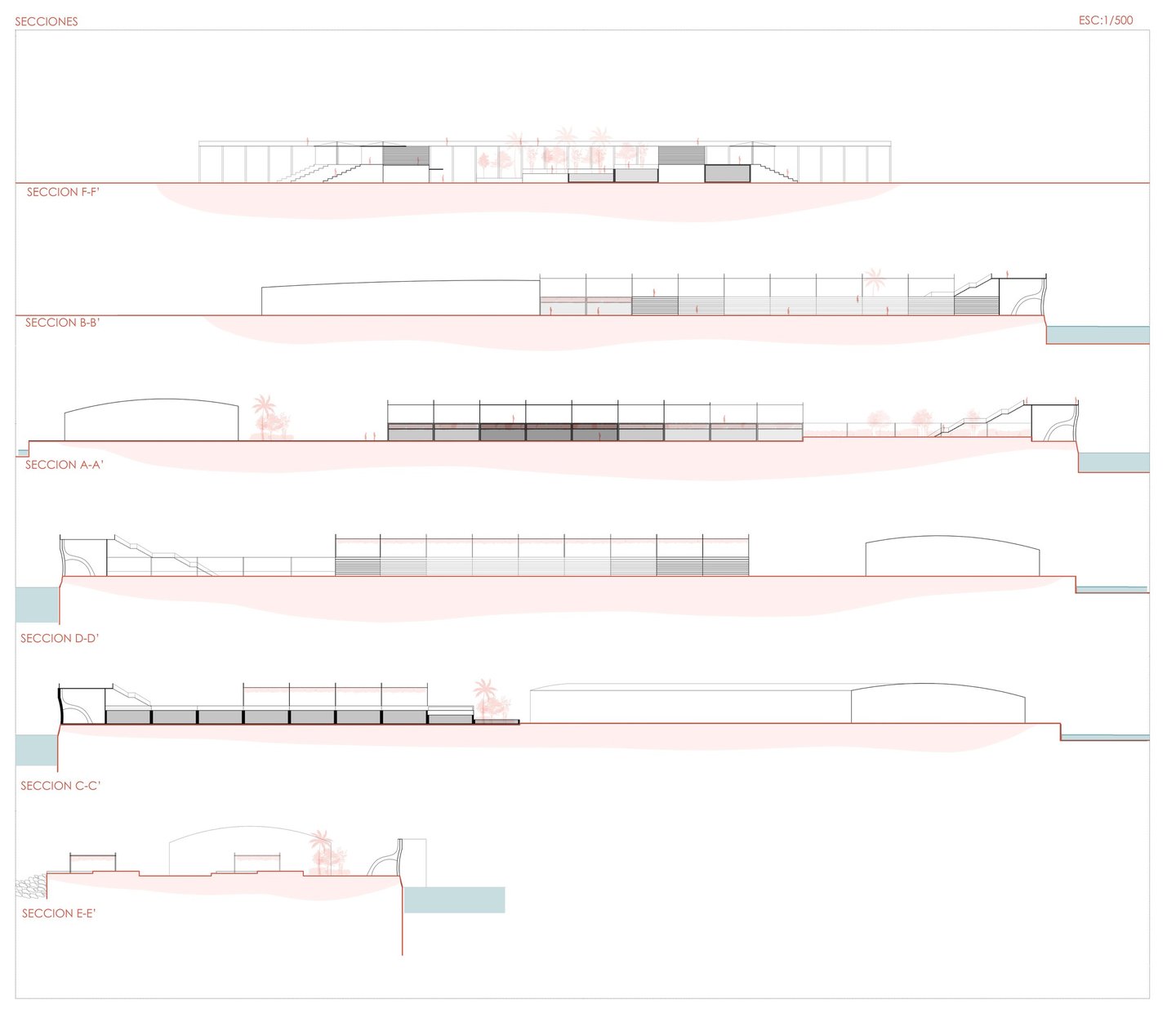The drawing set illustrates the project's layout, structure, and functionality through floor plans, sections, and construction details that clarify its spatial organization and design strategies.