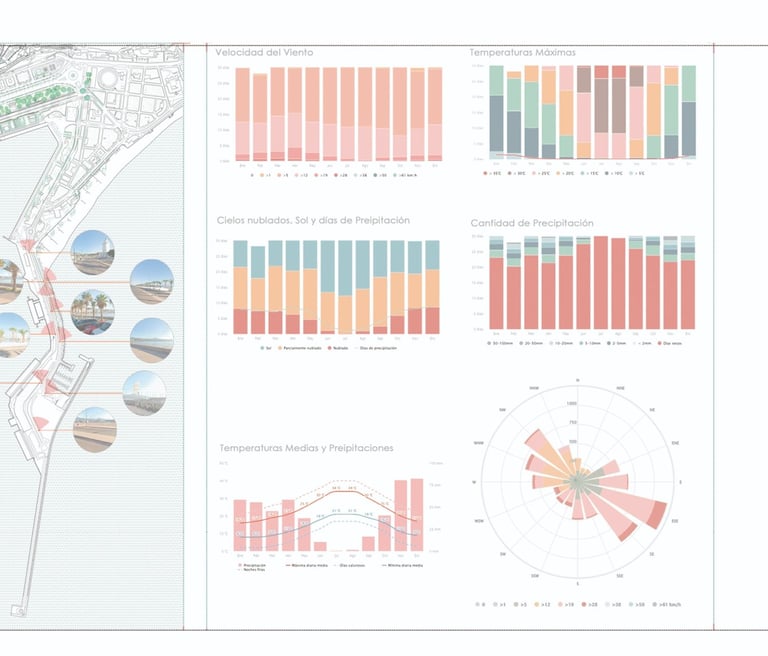 This modular project successfully blends functionality and aesthetics, featuring tiered elevations (4m and 8m) to maximize views of both the sea and Málaga. The southern bleachers attract the most visitors, especially at sunset, while the eastern viewpoint (8m) draws crowds but suffers from congestion. Wooden pergolas provide aesthetic appeal and shade, though they require maintenance due to marine exposure. By combining materials like concrete and wood, the space harmoniously merges urban and natural elements, creating a popular local and tourist attraction. Key takeaways: strong marks for versatility and visual impact, but improvements are needed in crowd flow management and weather-resistant materials for coastal durability.