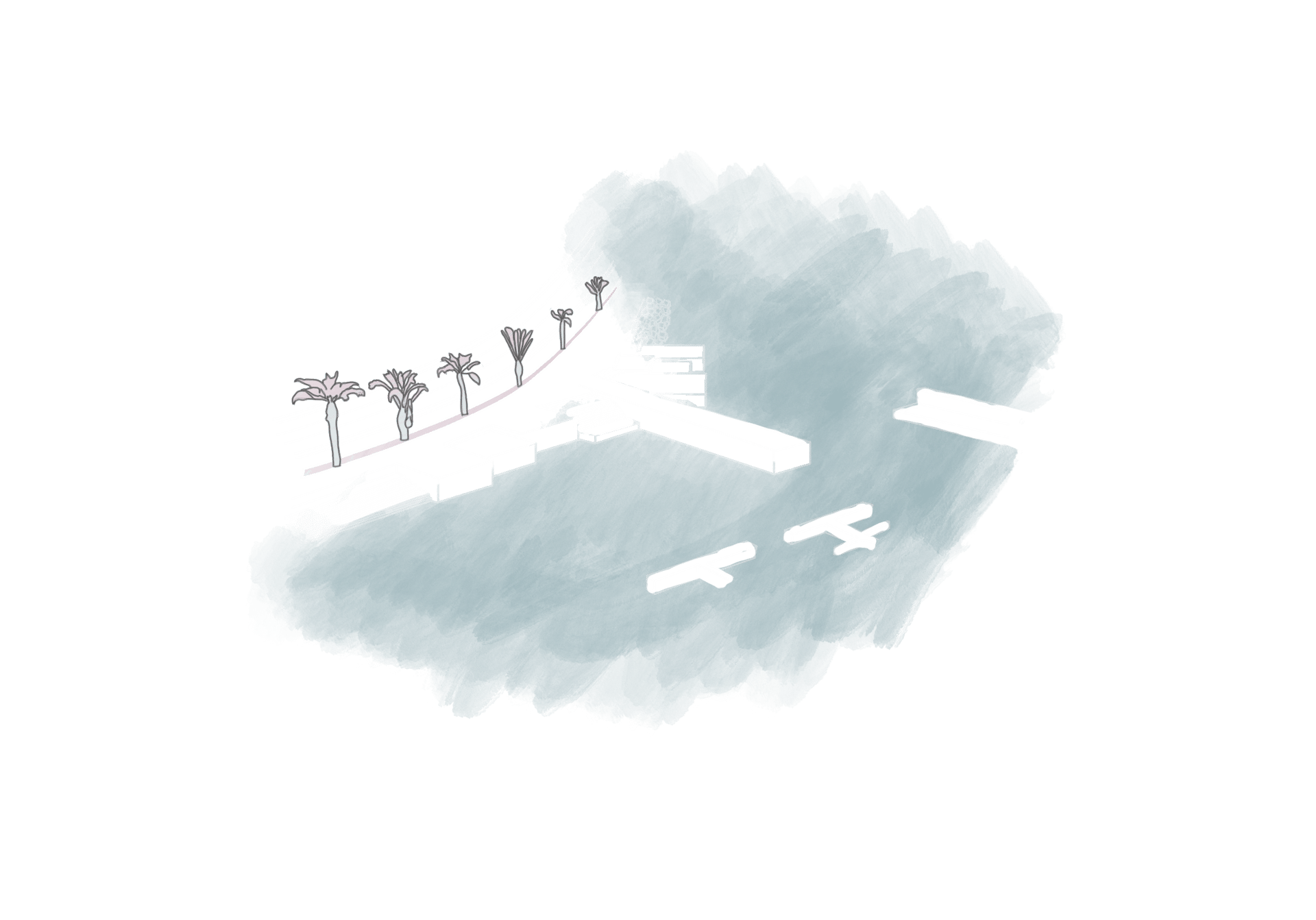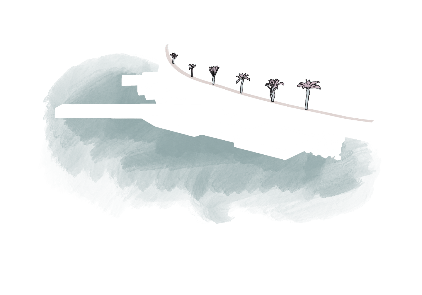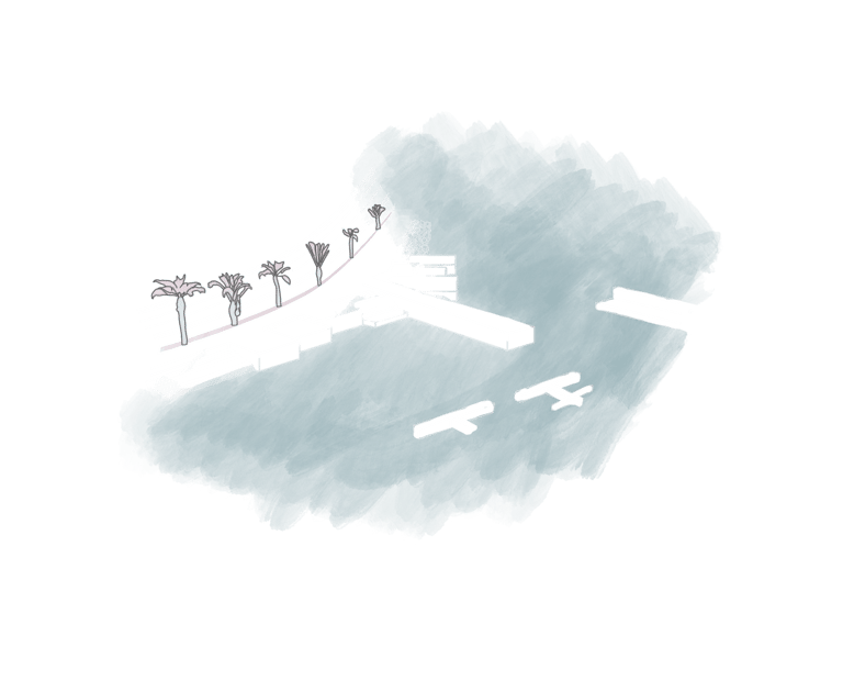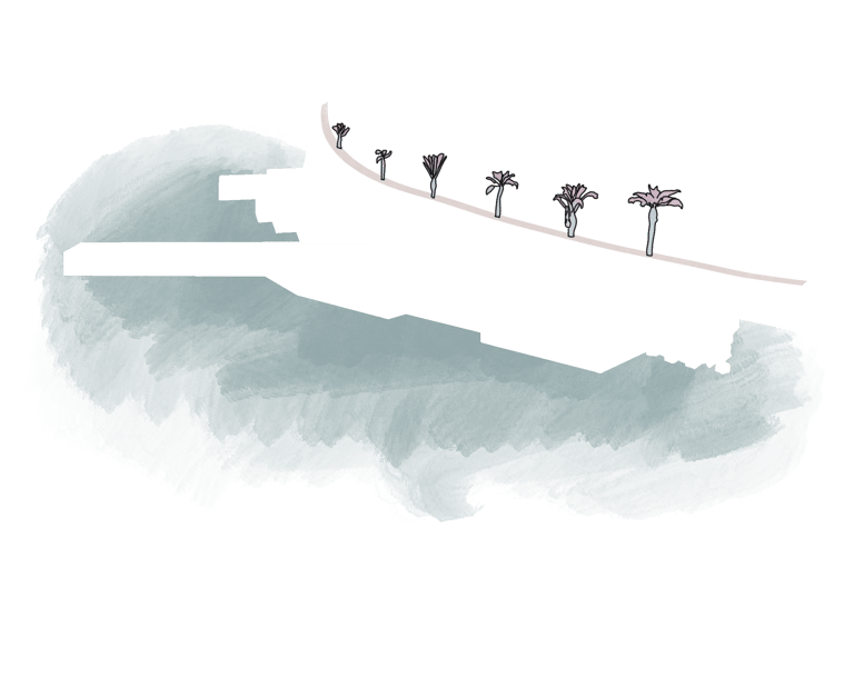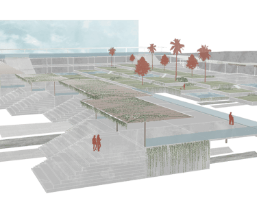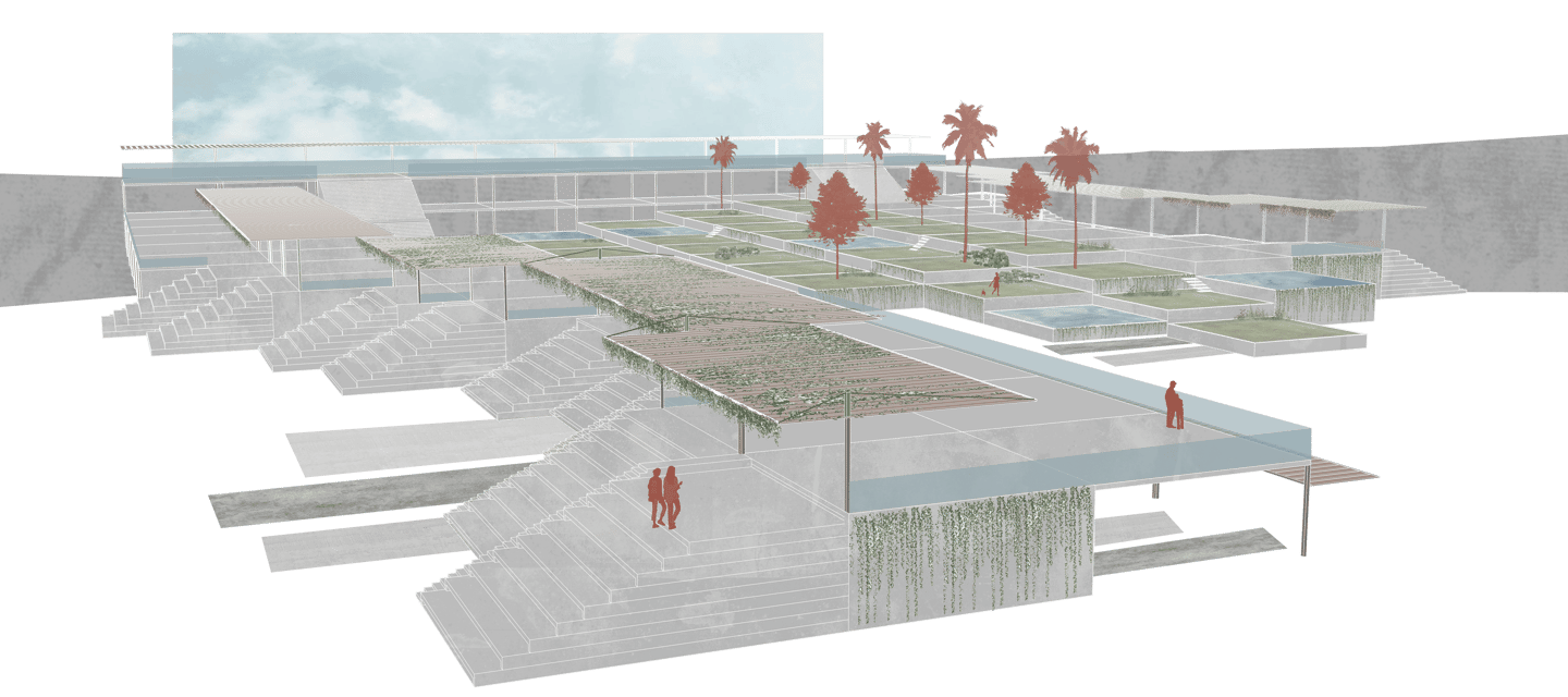 El proyecto general se compone de la utilización de los módulos, combinándolos para formar un elemento arquitectónico coherente y funcional. Este elemento se encuentra a una cota de 4 metros, salvo una parte específica al este que se eleva hasta los 8 metros para ofrecer vistas panorámicas al mar por encima del dique.