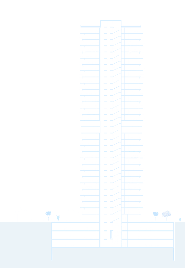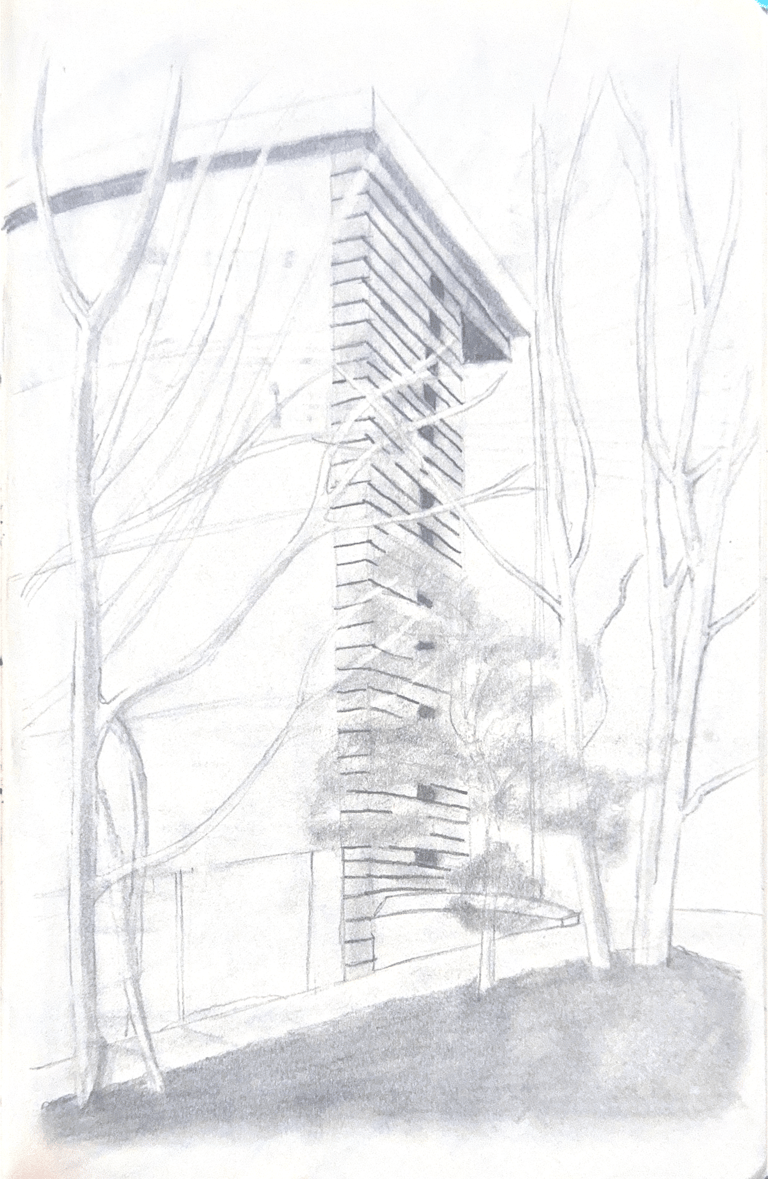 El emplazamiento de la torre se caracteriza por la integración cuidadosa de módulos de formas irregulares pero rectas, adaptados al terreno circundante. Estos módulos no solo añaden diversidad estética, sino que también cumplen funciones específicas, aprovechando eficientemente el espacio disponible.